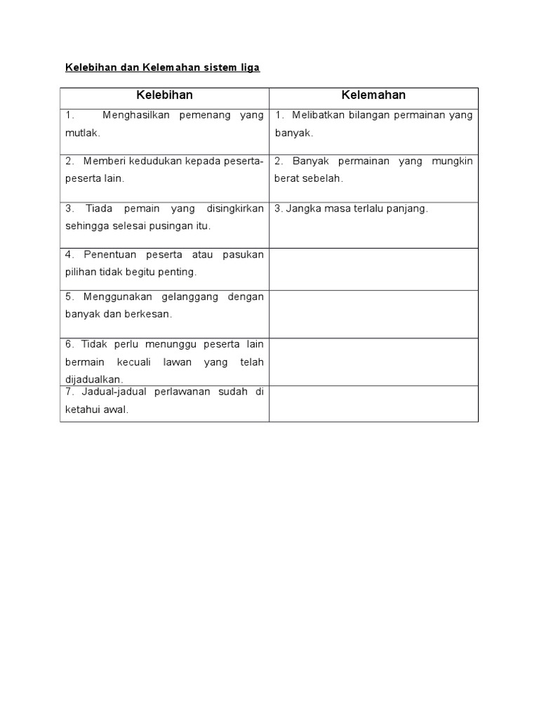 Kelebihan Dan Kelemahan Sistem Liga Sumber : www.scribd.com